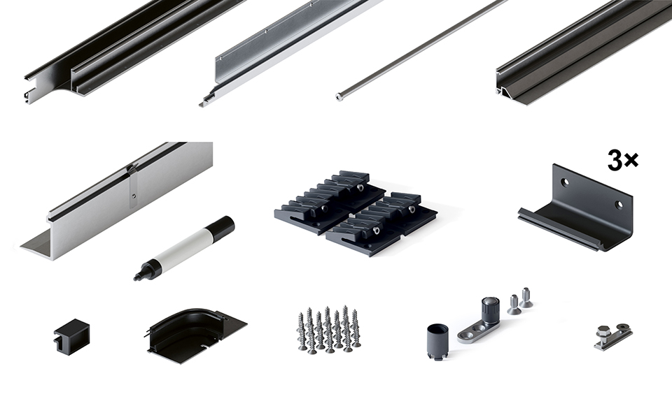Hawa Folding Concepta III 20/25. Ensemble de guidage pour deux vantaux, gauche, noir, matériau aluminium.