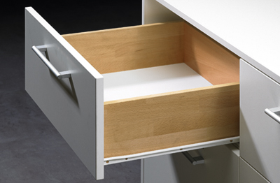 Tiroir coulissant partiel a billes pour tiroirs en bois, technique de fermeture automatique intégrée avec double sécurité anti-chute.