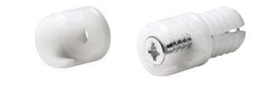 Příchyt relingu InnoTechu s rozpěrným pouzdrem k zalisování, bílý plast. Fixation de reling InnoTech avec douille d'expansion pour presse, plastique blanc.
