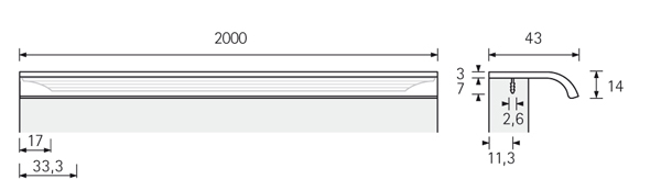 HETTICH 115115 Poignée LINDAVIA 2000 mm alu anodisé