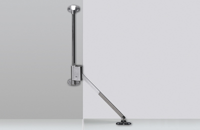 Frein de porte rabattable Klassik D avec palier L 258 D. Hauteur libre du corps 300 - 349 mm. Capacité de charge 4 kg par frein, 8 kg pour 2 freins. Tige de guidage, tige de traction et base : acier nickelé, corps et palier : piece moulée en zinc. Le numéro de commande correspond a la version gauche, en déplaçant la base on obtient la version droite.
