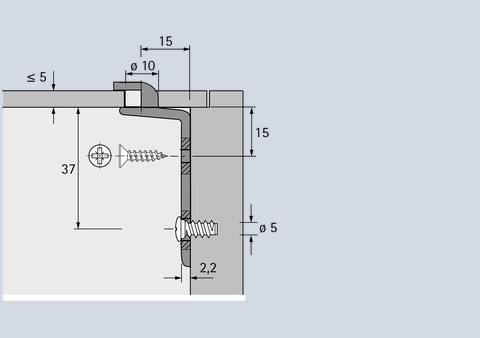 Peut etre monté dans une série de trous de diametre 5 mm. La quincaillerie serre le fond au côté du corps. Fonte de zinc nickelée.