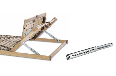 Quincaillerie de réglage pour la partie tete et pied, également utilisable pour des plateaux de bureau réglables en hauteur, lits d'examen, bancs, etc. L'emballage comprend 2 entretoises.