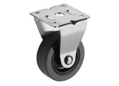 Diametre 75 mm, hauteur d'encastrement 102 mm, dimensions de la platine 60 x 66 mm, capacité de charge 50 kg. Corps : tôle d'acier galvanisée, axe riveté, roue : caoutchouc souple pour surfaces dures, palier a glissement.