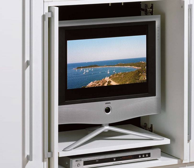 Ensemble de ferrures avec verrouillage permettant, apres ouverture de la porte insérée, de la glisser le long du côté dans le corps du meuble. Poids maximal de l’ouvrant de porte 14 kg, épaisseur 16-32 mm, hauteur 600-1800 mm, largeur 300-700 mm (pour cette variante maximum 300 mm).