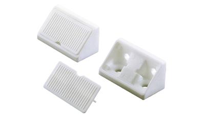 Pour petits corps et faibles charges. Fixation avec des vis a bois a tete fraisée de diametre 3,5 mm. Le cache-vis se clipse facilement et couvre ainsi les vis. Plastique.