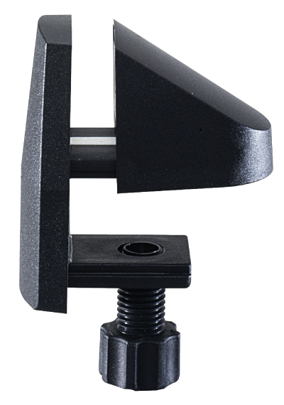 Support de plateau, fixation par pince, pour épaisseur de plateau de table 15 - 34 mm et paroi de 2 - 28 mm. Plastique noir.