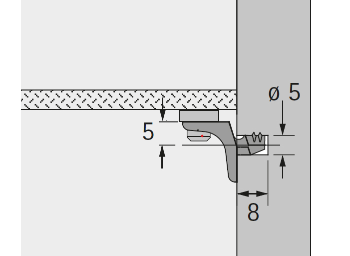 Support d’étagere en verre. Diametre de la tige 5mm. Peut etre utilisé dans System 32. Classe de charge L 75 (75 kg/m2). Fonte de zinc nickelée / Plastique transparent.