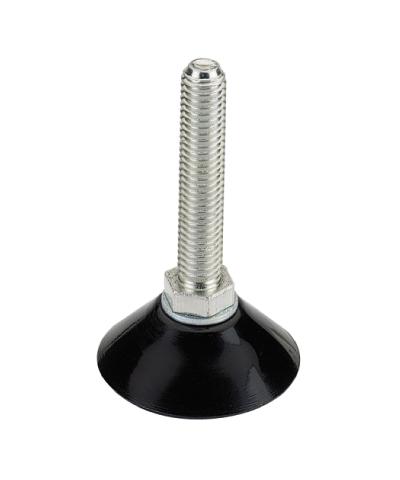Pour le réglage des rayonnages, cloisons intérieures et parois de séparation. Avec écrou de réglage et patin en plastique anti-chocs. Acier chromaté / plastique noir.