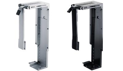 Se visse sous le plateau de la table ou sur une surface plane sur le côté. Dimensions max. pour PC : hauteur 370 - 630 mm, largeur 85 - 230 mm. Acier, peinture poudre noire.