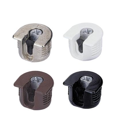 Ferrures de liaison excentriques. Se montent dans un trou percé de 20 mm de diametre, la piece se place sur la cheville par le dessus.