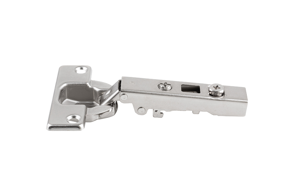 Charniere appliquée a visser avec technique a clip pour porte profilée jusqu’a 32 mm. Angle d’ouverture 95°. Épaisseur de porte a partir de 15 mm. Diametre du puits 35 mm. Avec ressort. Réglage intégré de l’appliqué +2,5 mm. Réglage intégré de la profondeur par excentrique +- 2,2 mm/-1,8 mm. Réglage en hauteur par cale de montage +- 2 mm. Cales recommandées : D1,5 vis 106403 ; D1,5 euro119240.