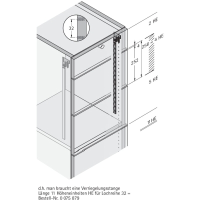 Pour verrouillage des deux côtés. Tige de verrouillage Stop Control Plus, entraxe de perçage 32 mm, non raccourcissable. L'ensemble comprend 2 tiges de verrouillage.