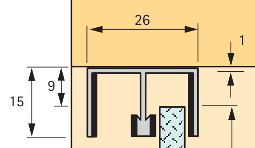 Profil porteur supérieur double, doublé de feutre a l'intérieur. Avec film de protection collé. Aluminium anodisé argenté.