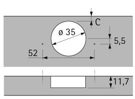 Naložený clip charniere a godet SANS RESSORT pour portes de meubles sans poignée. Angle d'ouverture 110 °. Avec technique clip. Déport 0 mm. Épaisseur des portes a partir de 15 mm. Diametre du godet 35 mm. Rondelles recommandées : D1,5 vis 106403 D1,5 euro119240