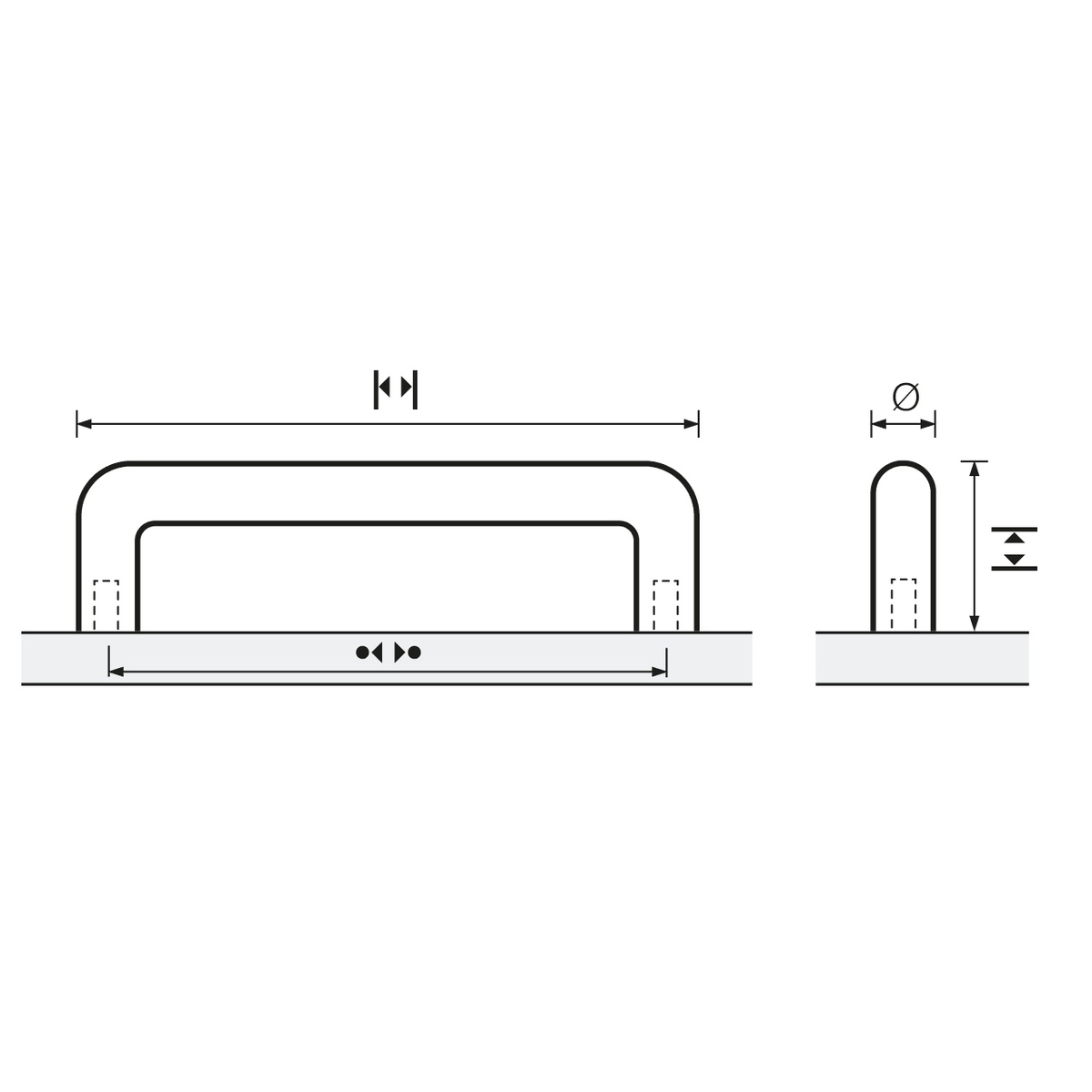Poignée Asopus, entraxe de perçage 320, L 332 mm, H 40 mm, diametre 12 mm, acier inox brossé