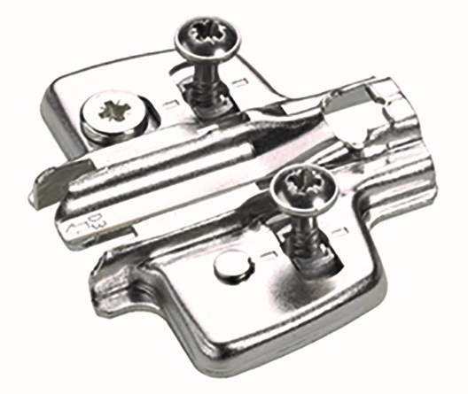Rondelle de montage pour charnieres Sensys et Intermat Hettich Top avec réglage excentrique de la hauteur ± 2 mm. Épaisseur du panneau latéral a partir de 15 mm. Entraxe des trous 32 mm. Avec vis spéciales préassemblées et douilles en plastique pour perçage d=5x12 mm. Acier nickelé.