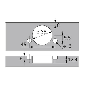 Charniere Sensys 8645i amortie a mi-charge, angle d'ouverture 110°, 45x9,5 mm, montage rapide de la coupe Fix D8x6mm.
