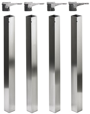 Tube carrée inox 60 x 60 mm. Longueur 700 mm. Réglage +10 mm. Finition : inox brossé. L'ensemble contient : 4 pcs pied de table, matériel de fixation.