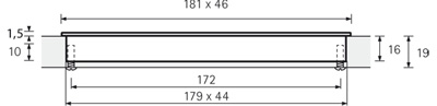 Poignée TOUCH-IN longueur 181 mm, entraxe de perçage 172 mm sans cache. A encastrer dans le matériau. Finition imitation inox.