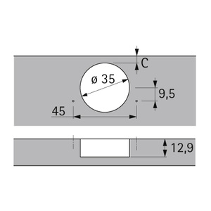 Charniere Sensys 8661 chargée pour ouverture sans poignée pour portes épaisses (jusqu'a 32mm), angle d'ouverture 95°, perçage de la coupelle 45x9.5mm, montage de la coupelle avec vis a bois.