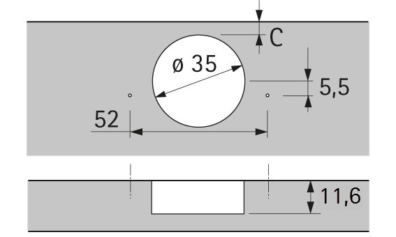 Charniere a recouvrement a visser avec technologie clip et fonction Push To Open - sans ressort. Angle d'ouverture 165°. Épaisseur des portes de 15 mm a 32 mm. Diametre de la coupe 35 mm. Réglage intégré du recouvrement +2,0 mm / -2 mm. Réglage intégré de la profondeur par excentrique +- 3 mm / -2 mm. Réglage en hauteur avec cale de montage +- 2 mm. Angle d'ouverture 165°. éléments. Cales recommandées : D 1,5 pour vis 106403, D 1,5 pour euro 119240.