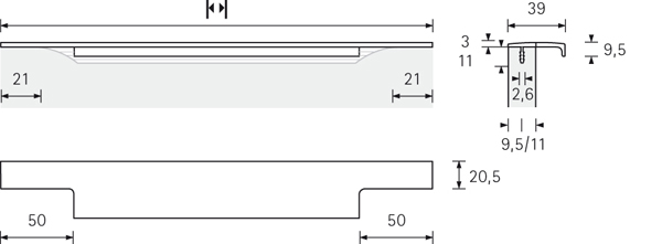 HETTICH 9105835 Poignée LAMEZIA 995 mm alu anodisé
