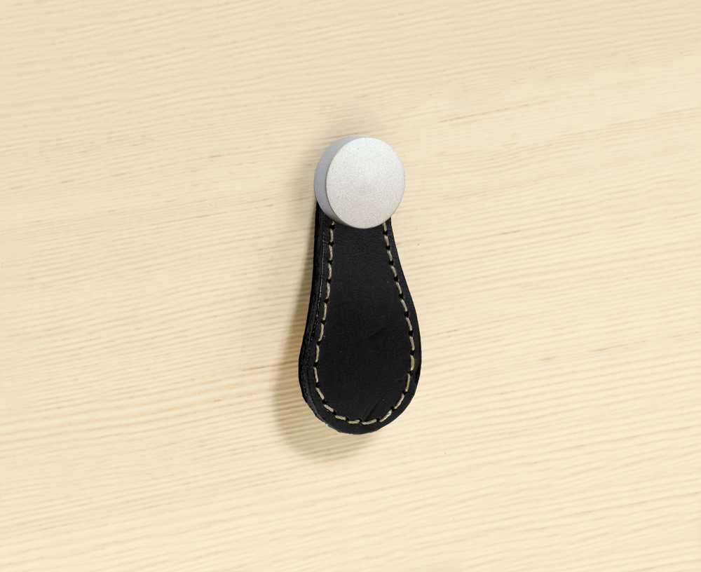 Poignée en cuir GALATI (goutte) cuir marron foncé. Commander en complément le couvercle avec vis de montage spéciale (136584 chrome mat, 187689 chrome, 187690 nickel mat, 187691 bronze antique).