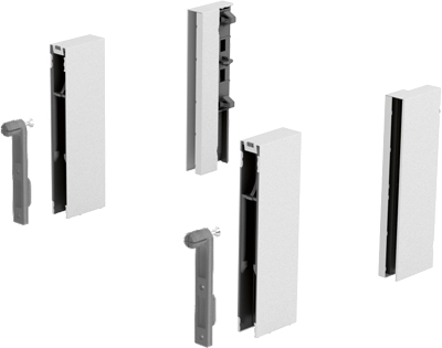 Pour une hauteur des côtés de 94 et une hauteur du dos de 218 mm, ainsi que pour une hauteur des côtés de 126 et une hauteur du dos de 250 mm. L'ensemble d'adaptateurs DesignSide comprend : 1 paire - adaptateur avant et arriere blanc, y compris les clips de fixation de la façade a emboîter et a visser.