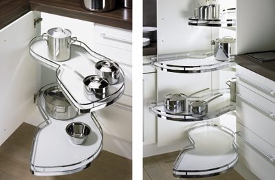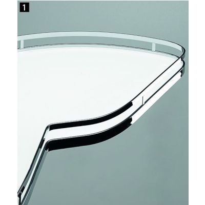 Ensemble d'étageres Arena STYLE chromé droite pour solution d'armoire d'angle inférieur (appelé angle mort). LeMans II. Il est possible d’ajouter un amortisseur externe a LeMans II qui rapprochera l’étagere, amortira a la fermeture et évitera un choc. Fond avec finition antidérapante. Pour corpus 1000 mm. Montage de l'amortisseur sur le bras extérieur. Dimensions intérieures du corpus : largeur : 960, profondeur 500, hauteur : 600-750 ou 720-900 mm. Dimension minimale des portes 461-468 mm. Tige de montage + fixation sur côté - 209344 (600-750 mm). Capacité de charge de l’étagere 25 kg. L’ensemble contient : 2 pcs étageres, 2 pcs mécanisme pivotant, 1 pc gabarit de perçage. Amortisseurs externes droits réf. 209206 ensemble 2 pcs.