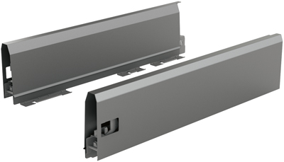 Ensemble flexible pour une hauteur de côtés de 126 mm comprenant : côté gauche et droit, 2 attaches de façade avec cheville a enfoncer, 2 caches avec logo Hettich, matériel de fixation. Finition : anthracite.