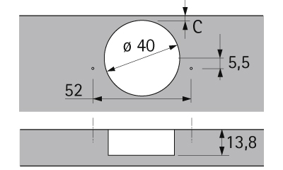 Charniere a clipser pour porte d'une épaisseur de 16-43 mm. Perçage de la coupelle diametre 40 mm, profondeur 13,7 mm.