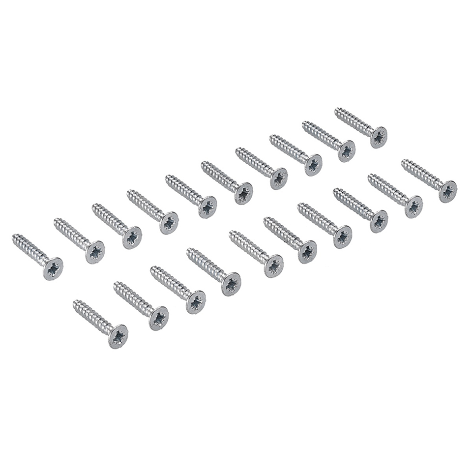 Fixation du profil porteur et du profil de guidage via rainure a visser. Épaisseur de l’étagere : 20 - 22 mm. Acier galvanisé. L’ensemble contient : 20 pcs de vis.