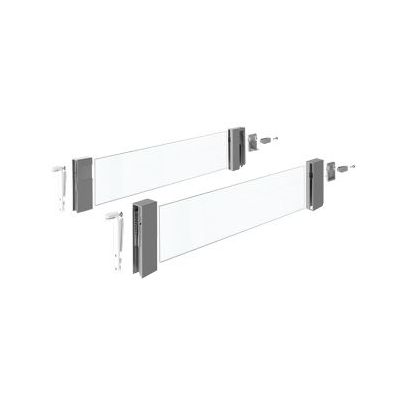 Verre flotté clair avec adaptateurs préassemblés, plastique anthracite. Épaisseur du matériau 6 mm. L'ensemble comprend : 1 ensemble DesignSide avec adaptateurs préassemblés, 2 fixations de façade avec douilles préassemblées, 2 fixations de façade a visser.