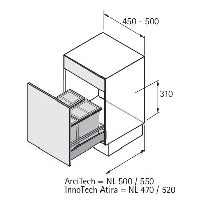 HETTICH 9208750 Bin.it Smart 450-500 mm 32l
