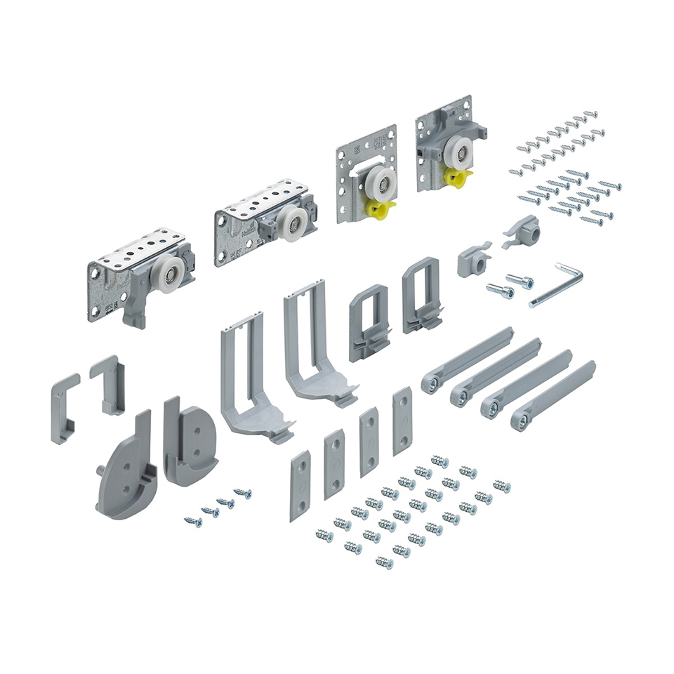 TopLine L, pour la production en série, ensemble de chariots et guides, sans réglage en hauteur, avant droit. L'ensemble comprend des chariots porteurs supérieurs, des guides inférieurs et le matériel de fixation. Pour une armoire avec 4 portes, commandez un ensemble pour 2 portes avec les portes avant gauche et un ensemble avec les portes avant droit. Les profils sont a commander séparément.