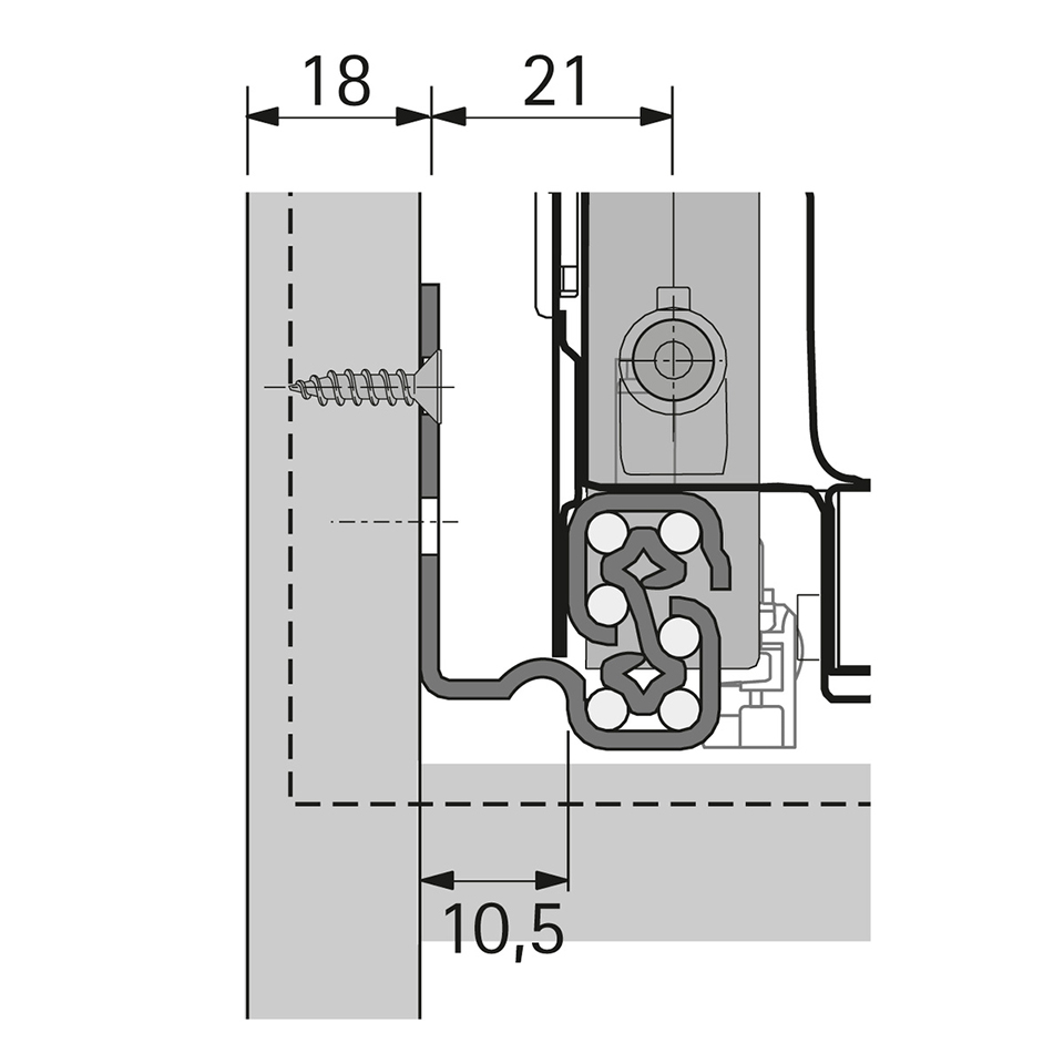 HETTICH 9243689 Atira coulisse a sortie totale, Quadro V6, 260mm/30kg, flanc 18m