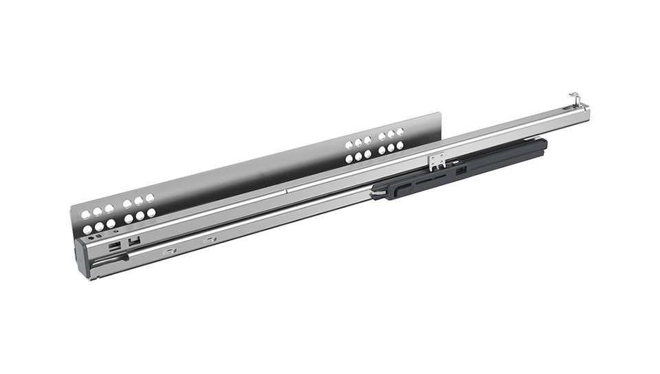 Le tiroir coulissant dans la version de base comprend uniquement l’amortissement (SiSy). Pour une ouverture sans poignée, il est nécessaire d’ajouter le module P2O correspondant selon la longueur nominale du tiroir coulissant et le poids total du tiroir avec son contenu.