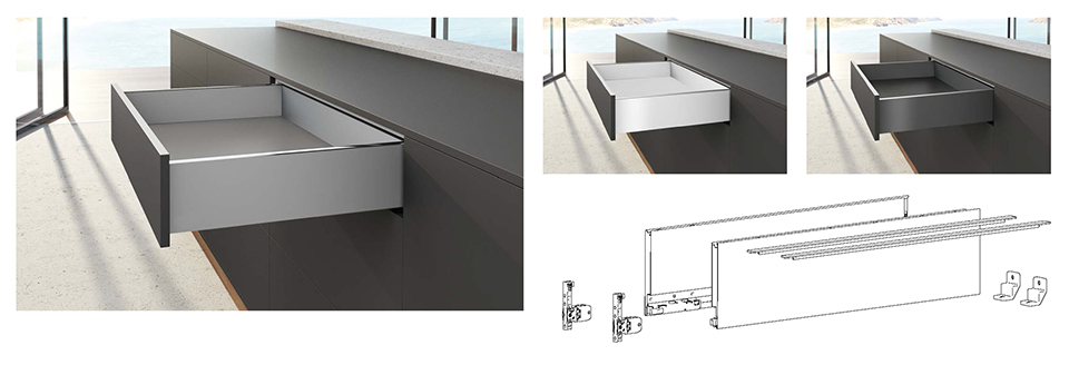 Jeu de côtés du systeme AvanTech. Hauteur 139, longueur 300 mm. Couleur anthracite. L'ensemble comprend : côtés L+P, supports de façade a vis a bois, profil de couverture, stabilisateur arriere. A utiliser avec les tiroirs coulissants Quadro You ou Actro You. AvanTech permet le montage direct des fonds sans l'utilisation de supports.