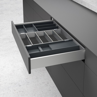 OrgaTray 630 répartiteur pour systeme AvanTech You et ArciTech. Couleur argent. Pour profondeur de tiroirs 550 mm. Dimensions du répartiteur L=271, H=43, P=523 mm.