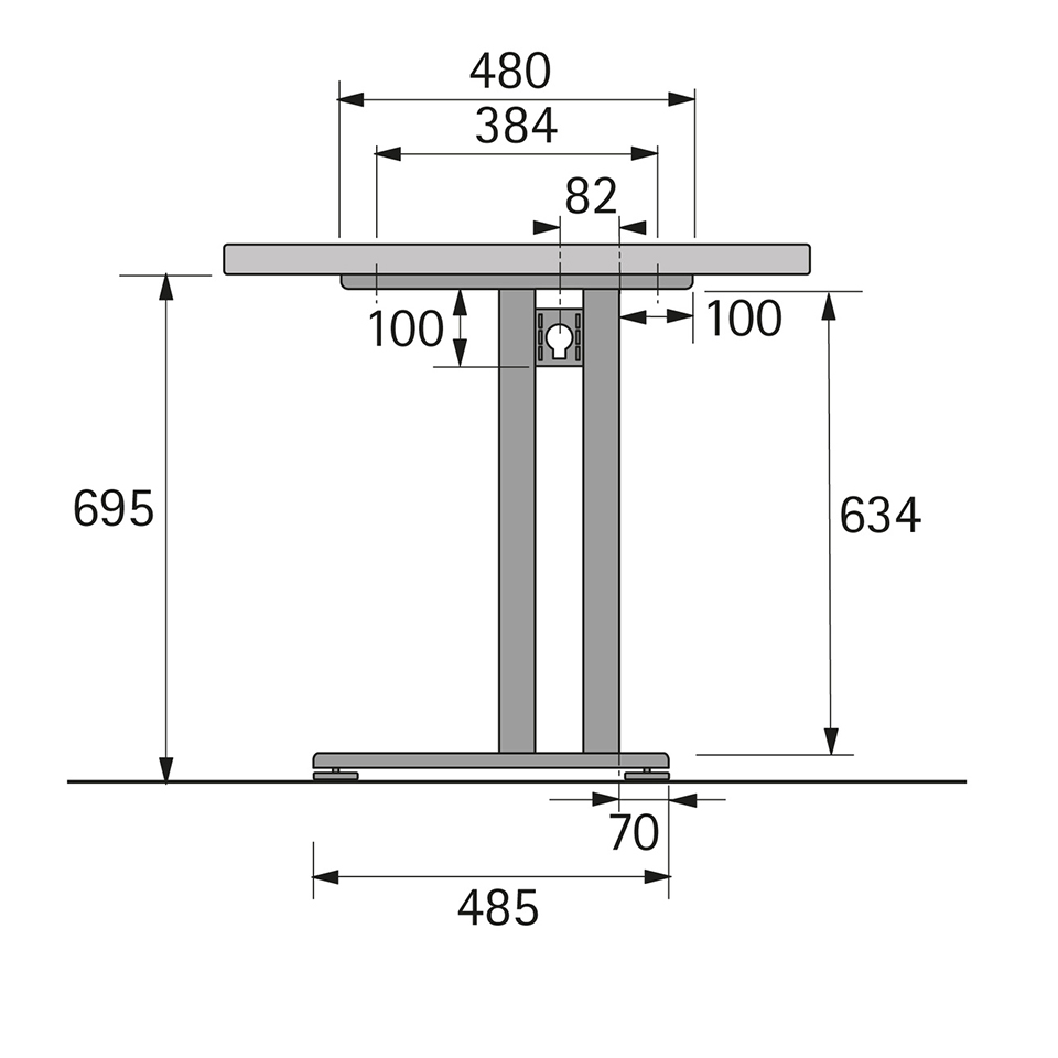 Systeme de table Change. Utilisable a droite comme a gauche, réglage en hauteur +15 mm. Acier, peinture en poudre finition aluminium. Hauteur 695mm.