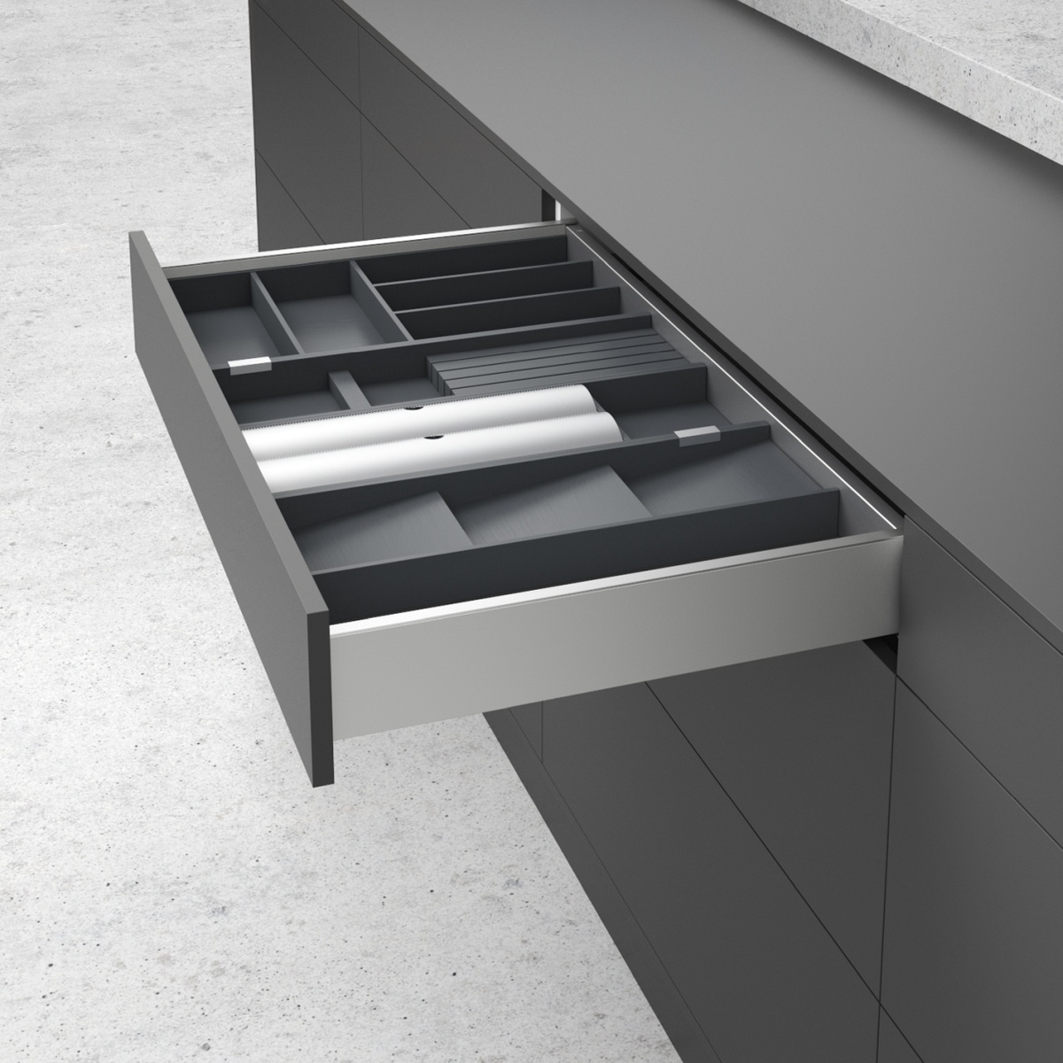 OrgaTray 270 support pour pots a épices NL=450mm anthracite a placer dans un insert multifonctionnel. Aménagement intérieur en bois premium pour largeurs variables. Grâce a la combinaison des différents éléments, différentes largeurs de corps sont possibles. Il est recommandé d’utiliser un tapis antidérapant. Peut etre combiné avec OrgaTray 630. Hetre verni, anthracite.