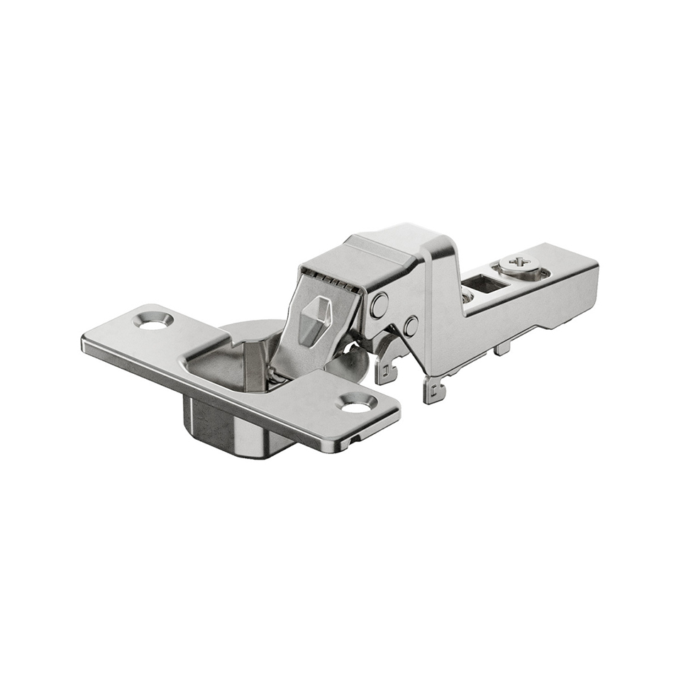 Mécanisme de charniere Novisys 8848 avec montage rapide par clip et ressort de fermeture (sans amortisseur SiSy). Angle d'ouverture 105°, gabarit de perçage selon indication (TH 52x5,5mm ou TB 45x9,5mm). Pour épaisseur de porte 14-24mm, profondeur de la cuvette 11,8mm. Réglage intégré du décalage +/- 2 mm, réglage intégré de la profondeur +2,8/-1,2 mm. Réglage en hauteur par cale de montage. Acier nickelé.