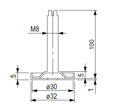 HETTICH 9318261 vis de réglage plinthe, M8, 100 mm