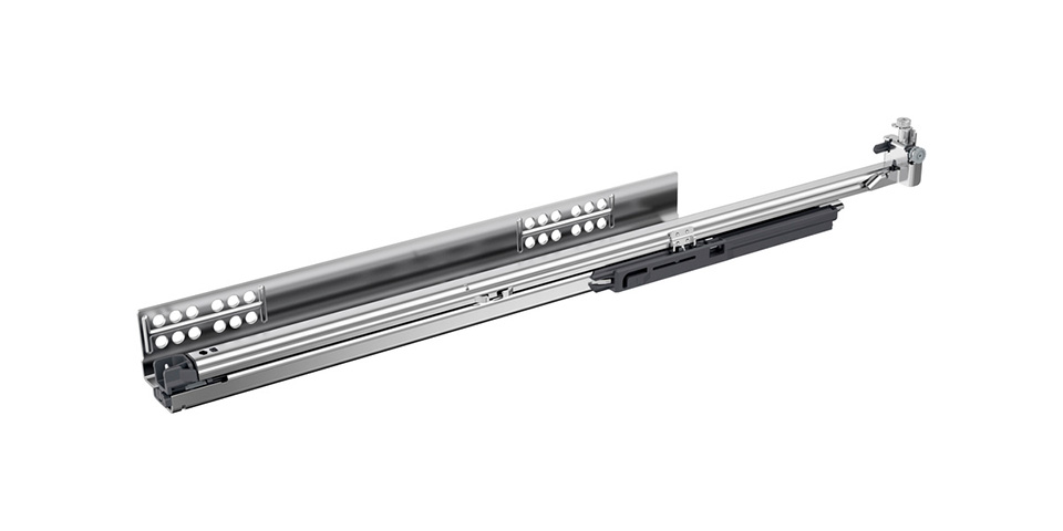 Amortissement intégré systeme silencieux (SiSy) avec possibilité d’ajouter des modules Push To Open Silent (PTOs, a acheter séparément - voir assortiment lié) pour une extension en ouverture sans poignée avec fermeture amortie. Pour le systeme PTOs, il est recommandé d’utiliser un arbre de synchronisation, les adaptateurs de synchronisation sont inclus dans l’emballage des modules PTOs. Pour des corps extra larges, il est possible d’utiliser une façade commune sur deux tiroirs et d’activer simultanément l’ouverture sans poignée des tiroirs ainsi associés en utilisant une synchronisation multiple supplémentaire PTOs.