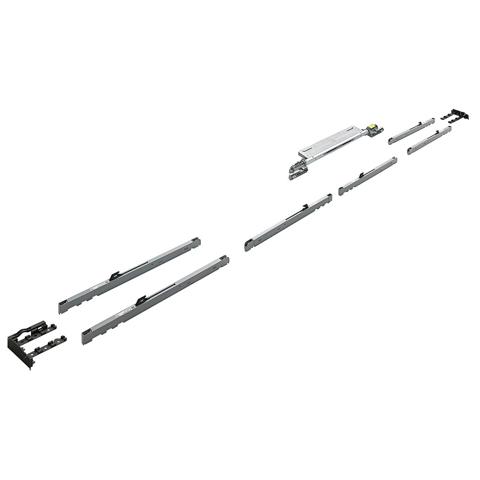Ensemble d'amortissement TopLine XL pour armoire a trois portes. Pour portes pesant de 15 a 35 kg, dans les deux sens d’ouverture et de fermeture. La porte centrale avant peut s’ouvrir des deux côtés (De et gauche). Comprend les caches d'extrémité, couleur noire.