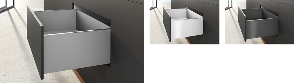 Ensemble complet pour la fabrication de tiroirs avec fixation de la façade par vis a bois.