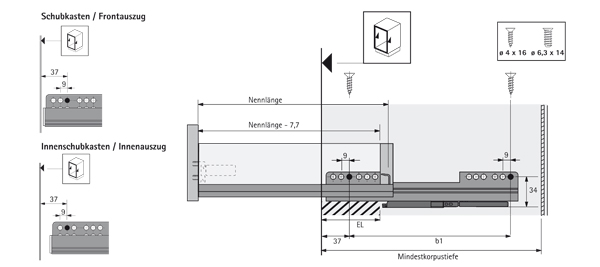 HETTICH Quadro 25 260mm EB 9,5 SiSy