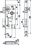 Serrure a encastrer de construction Hobes K 103 pour clé standard de type dozický (BB) d’une profondeur de 60mm, entraxe de 40mm, écartement de 72mm. Finition en zinc blanc. A un pene, avec trous pour plaques divisées, sans transfert. Comprend 1 clé. Dimensions du carré 200*22mm