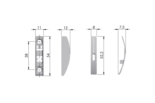 Le kit comprend également une fixation pour porte a montage en surface (sans besoin de fraisage) ainsi qu’une fixation fraisée. Pour les cadres étroits en aluminium, il est possible d’utiliser la fixation fraisée avec adaptateur pour cadres en aluminium.